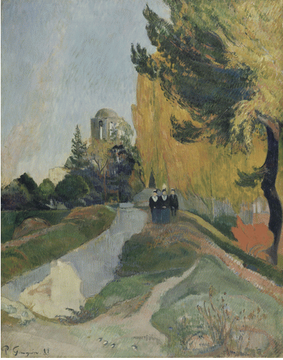 In 1889 an exhibition held at the Café Volpini brought the term ‘synthetism’ to the fore, but the press ignored the exhibition and it was a failure. If you want a more visual demonstration of synthetism, Gauguin’s use of blocks of colour in his paintings of the late 1870s are good examples. Even if this exhibition had been a success, I doubt the public would have understood the concept of form being defined by line and colour as seen in Gauguin’s “Les Alyscamps” of 1888, now in the Musée d’Orsay.