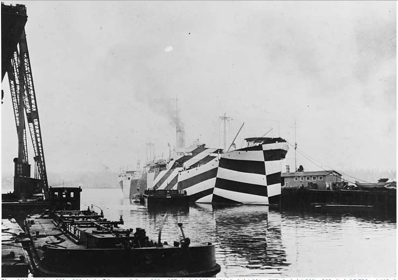 World War One saw an end to the cubist experiment, and all other art movements that were inspired by elements of cubism such as the Futurists and Vorticists. However, the fracturing of a shape using lines and geometric shapes played its part in the emerging requirement for maritime camouflage. The idea was to baffle any U-boat captain visually as can be seen in this photograph of the USS West Mohamet.