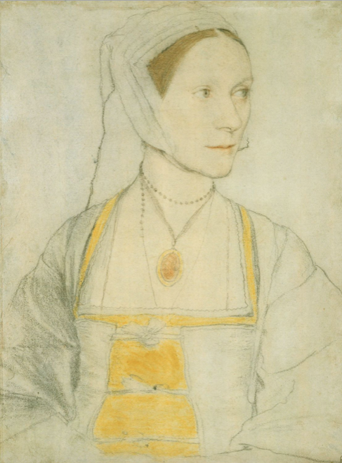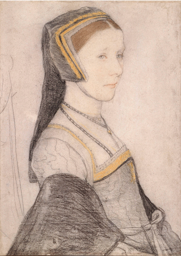 Elizabeth’s sister, Cecily (RCIN 912269) who is pregnant (below). More’s adopted daughter, Margaret Giggs, has been identified as the sketch reference RCIN 912229, but previously the same 18thcentury hand has labelled her as Mother Iak (aka Jak – the I and J being interchangeable). This sketch is below and, like the others, forms part of the collection of Holbein’s preparatory sketches in the Royal Collection Trust.