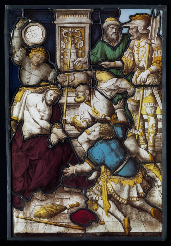 Deep in the Metropolitan Museum, New York, is a stained glass window by Jan Rambouts (1475 -1535) who, like Bening, also came from the southern Netherlands. The window dates from 1529 and Christ’s robe is a deep magenta colour. Unlike in the various paintings, the colour of Christ’s robe has retained its deep colour. The Met’s website does not provide us with a clue as to which church this window once came from, but their collection houses various other windows by Jan Rambouts showing scenes from the life of Christ.