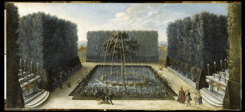 Dr Wilkinson’s own photograph from the entry to La Salle de Bal. Other photographs of this part of Versailles from https://andrelenotre.com/bosquet-de-la-salle-de-bal-jardins-de-versailles