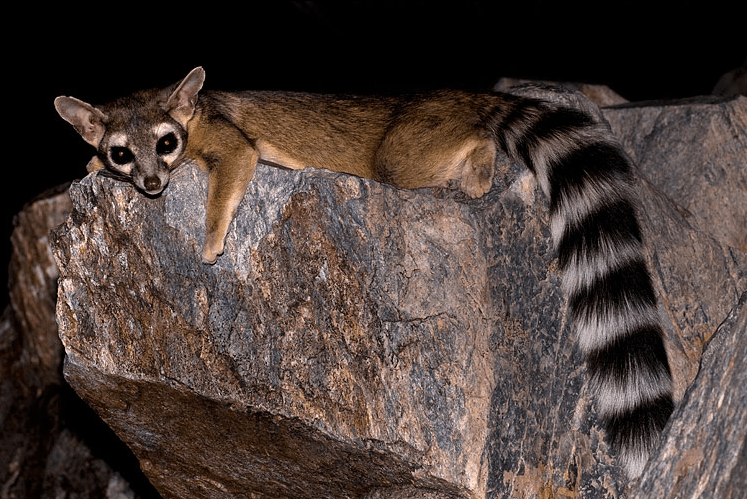 The simian may be a Panamanian white-faced Capuchin monkey, which is wide spread through Central and South America. They grow to about 22 inches tall, plus their tail.