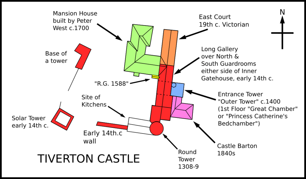 William died a month, leaving Princess Katharine to tie up the various legal loose ends before their surviving son, Henry, could inherit the title and lands. This required his mother to petition Parliament on his behalf. Through the mediation of the Bishop of London these ‘loose ends’ were finally tied off in October 1512 and the following month Parliament approved the transfer of both title and remaining lands to the ten year old Henry de Courtenay. After the death of William, Princess Katharine had taken a vow of celibac the previous year in order to bring up her two surviving children, Henry and Margaret, and now having got as much of her husband’s lands and estates restored as she could, she retired to her Devon estates spending her time between Tiverton and Colcombe castles.